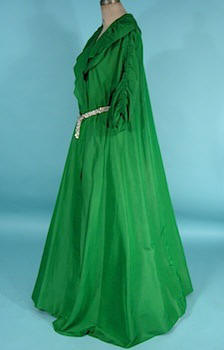 variety show~#4653 - c. September 13, 1923 JULIE ANDREWS Worn Ivory Wool and Gold Lame Embroidered Cloak with Hood! Worn on the FIRST episode of her multi Emmy Award Winning "Julie Andrews' Hour" Variety Show singing "If Ever I Should Leave You" from the Broadway show "Camelot"! I researched to try to find out when and where Julie Andrews wore this cloak. Since the cloak looked to be "medieval" in style, I thought perhaps she wore it as Guenevere in Broadway's "Camelot". But all photos from the Broadway show showed other cloaks. So... I found nothing until I posted the question on the Julie Andrews Online website and within minutes "Christina" found the clip of Julie in the cloak singing "If Ever I Would Leave You" from Camelot - that's all I needed to find the rest of the information! In the clip, aired on September 13th, 1972 during her FIRST episode of her variety show, she is wearing the underdress that I don't own, but it IS this cloak! The cloak is in Fabulous condition (just a tiny bit of tarnish inside at hem, and probably some sequins missing but you'd have to search to find that).. and beautifully made! Very heavy. Exquisite gold lame (the kind they don't make anymore!) on an ivory wool weave fabric with diamond shaped detailing. Extraordinary gold lame embroidery with sequins and beading border the cape at all edges, including the large gold lame lined hood. The gold lame dress shown under the cloak does NOT come with it, and was NOT original to Julie Andrews ... rather it is an original 1920's gold bullion lace dress slightly redesigned that just looked nice under the cloak. The dress is available separately. Cloak measures 58" long in front shoulder to hem, 76" long in back. Excellent condition. $ 2,250. SOLD