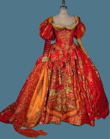 # 5913 - c. 1986 JUNE ANDERSON Stage Worn Opera Gown with Original Massive Slip! This EXTRAORDINARY, SUMPTUOUS gown arrived and just WOWed me! And you know from the other items on my website, it take a lot to WOW me! The gown weighs an astonishing 9 pounds and the half slip under weighs ANOTHER 9 pounds!!! I have no idea how they moved in these gowns, but they did! I have photos (just on the website, they don't come with the town) of the original sketches by Michael Stennett (thank you Michael!!). The gown is in a wearable size of 35" bust, 27" waist and 41" long from waist to hem in front, 70" long in back. Excellent condition!! This gown was designed by Mr. Stennett for Susan Patterson and created by the San Francisco Opera Company, and then worn by June Anderson the following year for the same production. June Anderson's name is inside the gown, and Susan Patterson's name is inside the slip. Huge gold bullion tassels hang down the front, metallic embroidered fabrics.... just a masterpiece! Breathtaking! I found the original design sketches from the designer online! Just an extra "WOW" factor! FINAL SALE MEMORABILIA ITEM. Slightly higher shipping costs due to weight/size.$ 5,000. SOLD ON LAYAWAY REDUCED PRICE TO SELL FROM CONSIGNOR!!!!