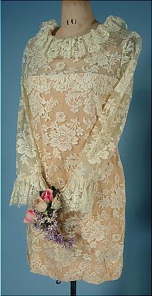 | c. 1960s BILL BLASS for MAURICE RENTNER Ivory Lace over Nude Lining Mini Dress #6328 |