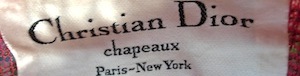 SOLD# 5221 - c. early 1960's CHRISTIAN DIOR Chapeaux, Paris, New York Hot Pink Floral and White Lily of the Valley Toque Hat! Owned by ANITA LOOS! This seems to have been Christian Dior's look of the 1960s! There are many of these floral design Dior hats around... so they must have been quite popular. You also see Dior turbans and feather hats as well, but these have to be the favorite! I mean... who can resist wearing a complete garden on your head?? Too bad it was a few years too early for the "flower child" generation.... rather their mother's were wearing these hats. Anyway, enough of my babbling... Pull your hair back and on those bad hair days, just put this on and look smashing. The dresses didn't need to be flashy when you were wearing this. If I think back, I'm sure my mother had one similar and wore it with a simple raw silk pink suit. One of the latest hats in the Anita Loos collection. She passed away in 1981. I had a hat collector date this to 1962. ALSO note: Lily of the Valley was Dior's favorite flower, so it's fitting that there are white lily of the valley silk flowers on this at as well! Final Sale Movie/Memorabilia piece. $ 365. SOLD
