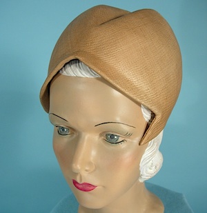SOLD# 5210 - c. 1950's RARE Original ROBERT DUDLEY, New York Hat Owned by ANITA LOOS! OH.... MY.... GOD!!! I call this the "flying nun" hat... yes, I'm that old... back to when Sally Fields was playing a teenager, not a grandmother on TV. This is a rare Robert Dudley hat. From the NY TIMES, obit on Nov.4, 1992: "Robert Dudley, was a New York milliner whose hats for women were popular in the 1940's and 1950's. Many of Mr. Dudley's designs are in the collection of the Fashion Institute of Technology (FIT). His large clientele included many theater and society figures and he designed hats for several films, including "Rebecca." During the 1940's and 1950's he operated the Chez Robert salon at Saks Fifth Avenue and his own shop, Robert Dudley Originals, on the East Side of Manhattan". So, prior to "the Mad Hatter: Bes-Ben in Chicago", there was Robert Dudley who, along with the likes of Elsa Schiaparelli (influenced by Dali) designed highly surreal hats. Schiaparelli had one shaped like a high-heeled shoe while Dudley designed a set of war hats, which included huge 3-D depictions of cannon, torpedo, periscope, and even a hat depicting Hitler... complete with mustache (again, this was 1939 prior to the horrors of WWII). Anita Loos loved her hats, and I bought her entire collection, which included some fantastical pieces like this of blue velvet, sculpted into this stiff "flying" hat. A rare piece indeed! And if you don't know who Anita Loos is, you should! Click on this link... http://en.wikipedia.org/wiki/Anita_Loos) Final Sale Movie/Memorabilia piece.