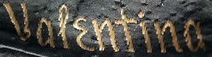 SOLD# 5307 - c. 1940's Black Suede Tiny Rhinestone, Braided and Beaded Gloves! Owned and Worn by ANITA LOOS! Wearable Size! Along with her hat collection, there were a few pairs of gloves and a few pair of shoes which were included in the estate package I purchased from the Anita Loos estate. To think you can wear the gloves that adorned Ms. Loos.... and all the history that goes along with that!! As you can see.... these are a wearable size (as opposed to some older gloves that are so tiny, they are useless). Marked size 7. Marked Nutine? She had a few pairs with the same marking... must have been a good brand. Excellent condition... but they were worn. 12.5" from tip to bottom. Final Sale Movie/Memorabilia piece. $ 185. SOLD