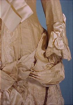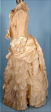 #2684 - c. 1883 STERN BROS. Wedding Gown of Cream Grenadine and Lace with