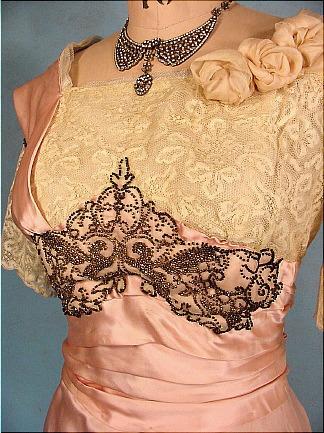 magnificent and very regal circa 1908 lady's one piece pink satin