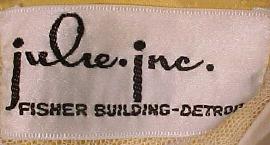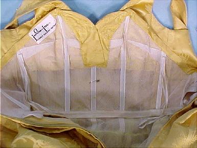 #4215 - c. 1959/1960 SARMI Yellow Brocade Ballgown! Coty Award Winner! Wanna play princess? This Sarmi gown is beautifully made with the finest silk brocade, so all you will need a canary yellow diamond tiara to complete the royal look. You should know Sarmi... he began his career working for Elizabeth Arden for 8 years. Pat Nixon wore a Sarmi for Elizabeth Arden gown for the Inaugural Ball in 1957. He opened his own high quality ready-to-wear company in New York in 1959, and in 1960, won a Coty Award. Sarmi's specialty was grand evening dresses. Prices were up in the thousands even back then!!! In 1972 he reorganized his business calling it Ferdinando Sarmi. From researching this gown's shape in my Vogue library, I have to date it to 1959/1960, so this may very well a gown from Sarmi's first collection! Measures: 34/35" bust, 25/26" waist, 40.5" long from waist to hem. Crinoline net under. Back metal zipper. The bow at front is pinned on, so you can decide if you want to keep it, or wear without (but I LOVE that bow!). Excellent condition. High underarms, so best to have thin arms for comfort. Exquisite look!
