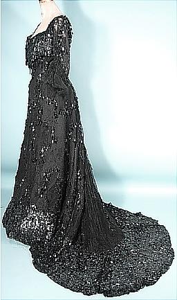Trained Evening Gown of Black Chantilly Lace and Heavily Trimmed in