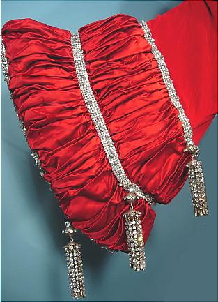 MARGRET Incredible Stage Worn Red Velvet and Red Satin Rhinestoned